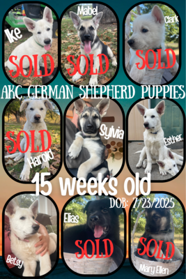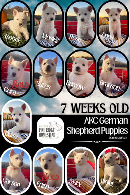 Lina was been bred with silver sable "Masters Creek Titus of Maverick" at The Redbird Ranch. 9 puppies were born on 7/23/25 and available for homes NOW! As of 12/11/25 we still have 3 females available and their price is marked down to $300.