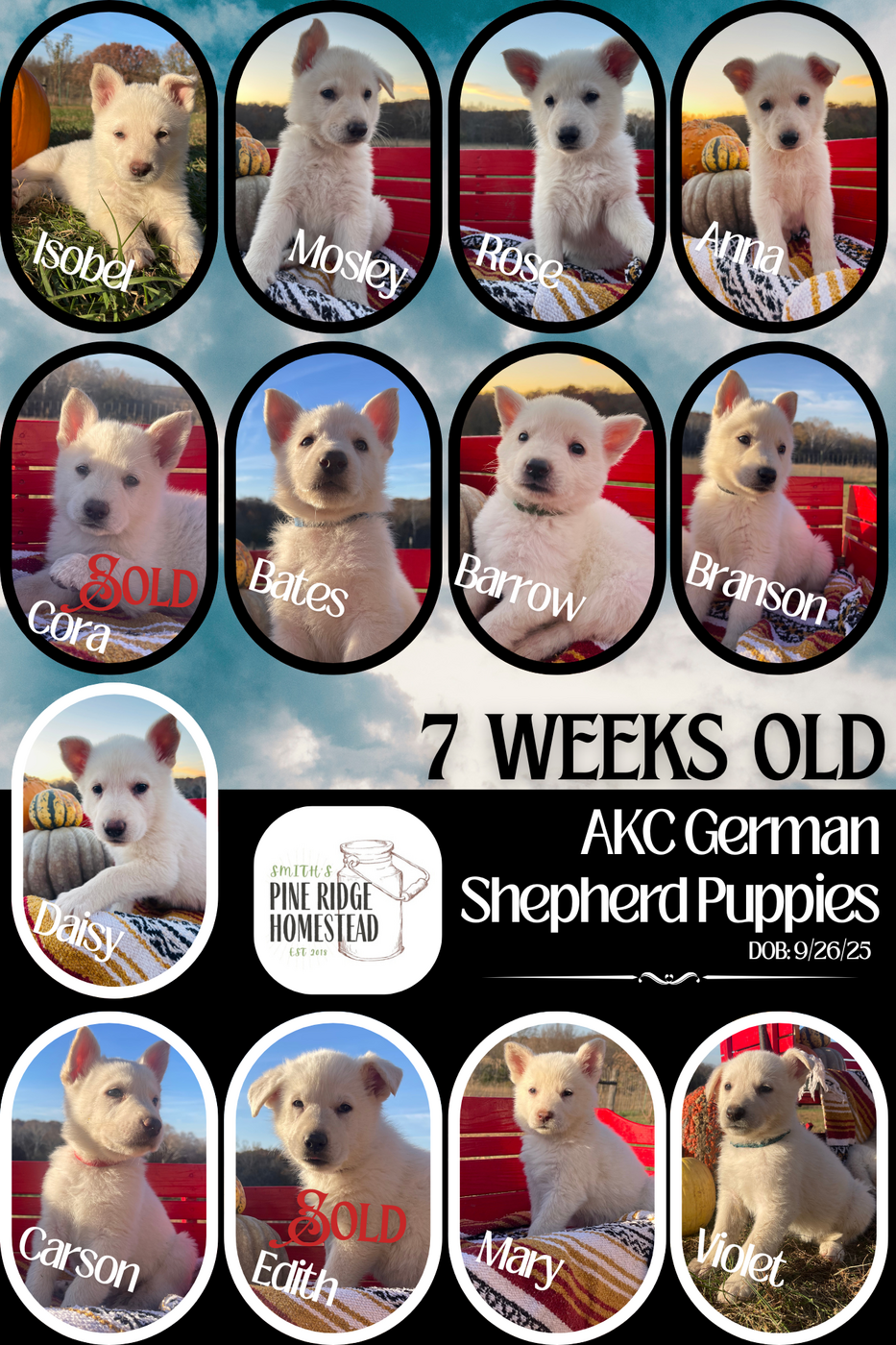 Lina was been bred with silver sable "Masters Creek Titus of Maverick" at The Redbird Ranch. 9 puppies were born on 7/23/25 and available for homes NOW! As of 12/11/25 we still have 3 females available and their price is marked down to $300.